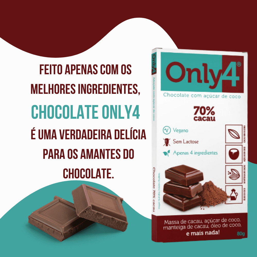 Concluindo, o chocolate Only4 Puro 70% cacau oferece um sabor puro e rico, além de inúmeros benefícios à saúde.